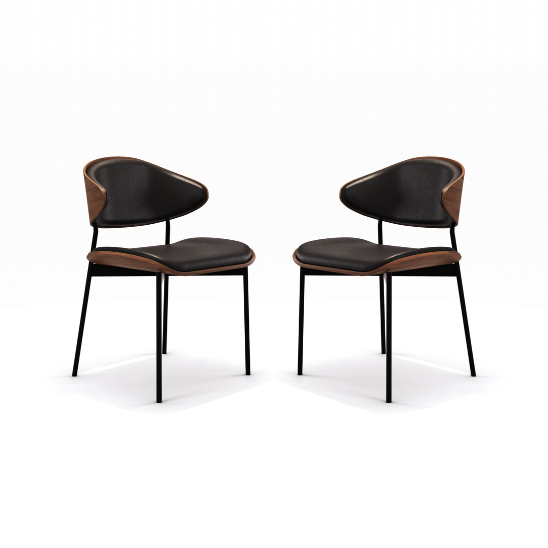 • Molded Walnut Plywood Veneer Shell • Premium Microfiber Faux Leather Upholstery • High-Density Foam Padding • Cast Iron Base with Matte Black Powder Coating |