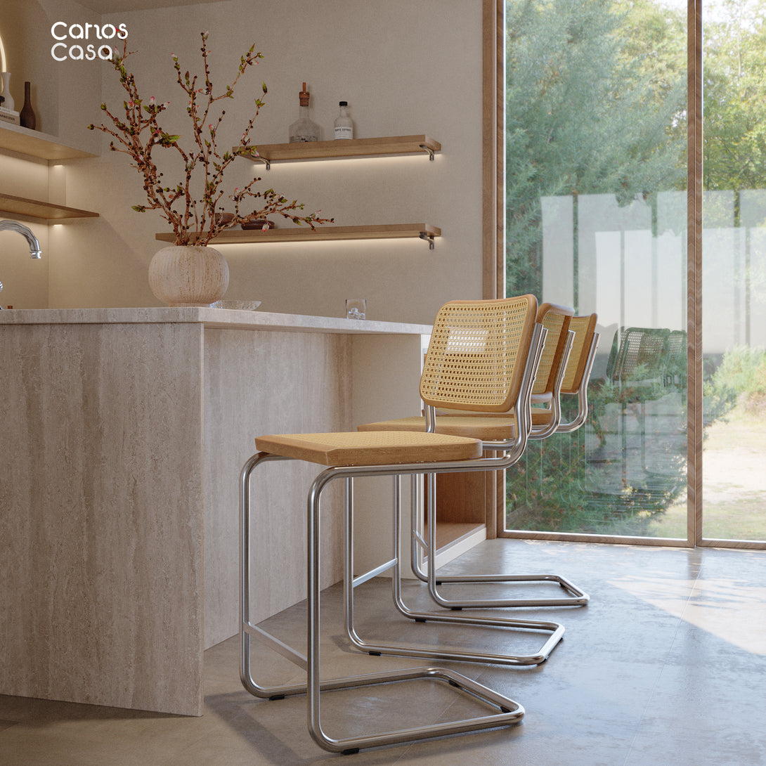 Eleve su espacio con la elegancia atemporal del taburete de bar o mostrador de caña Cesca Style de Marcel Breuer. Este taburete icónico combina a la perfección el diseño clásico con la funcionalidad moderna, lo que lo convierte en un complemento perfecto para cualquier entorno.